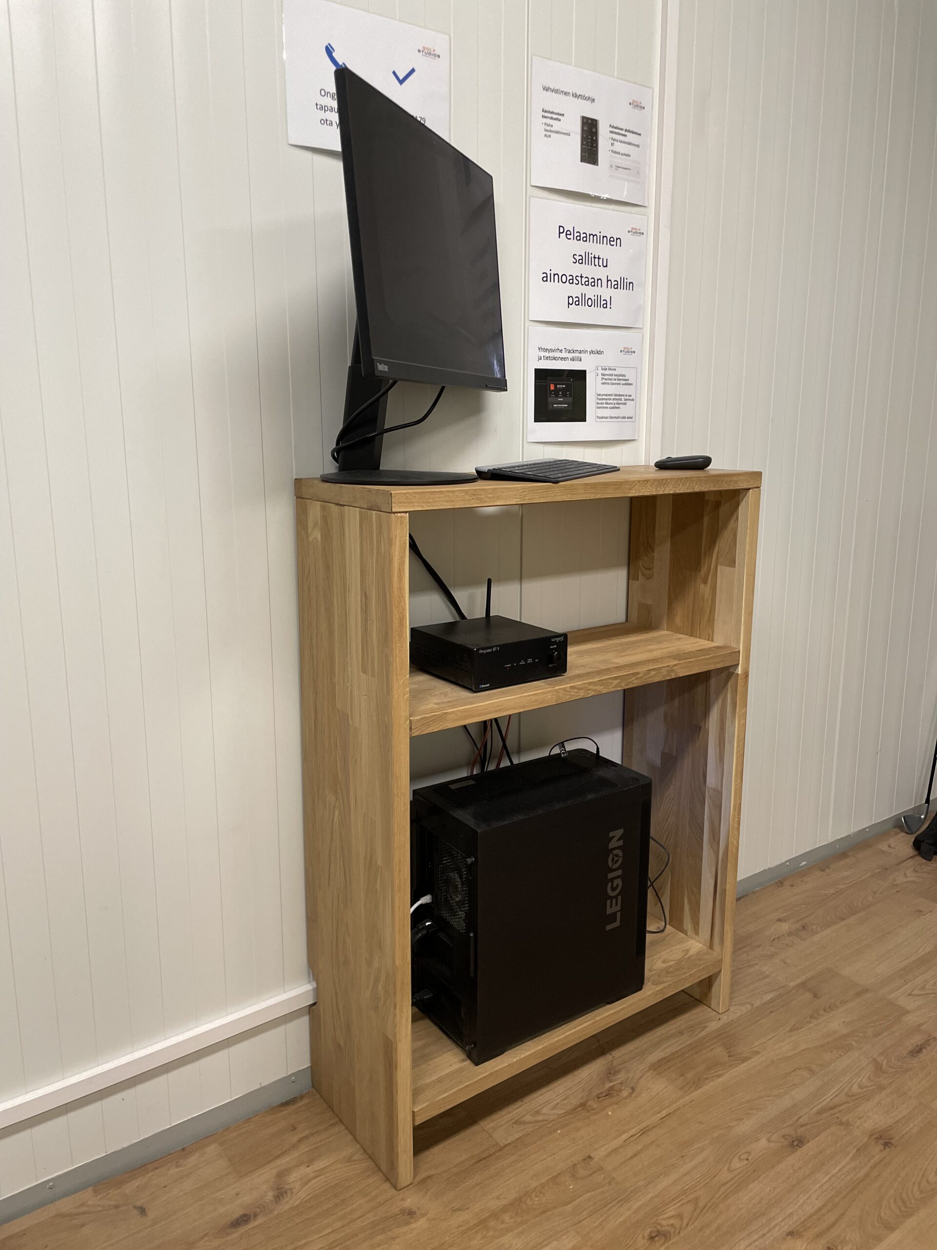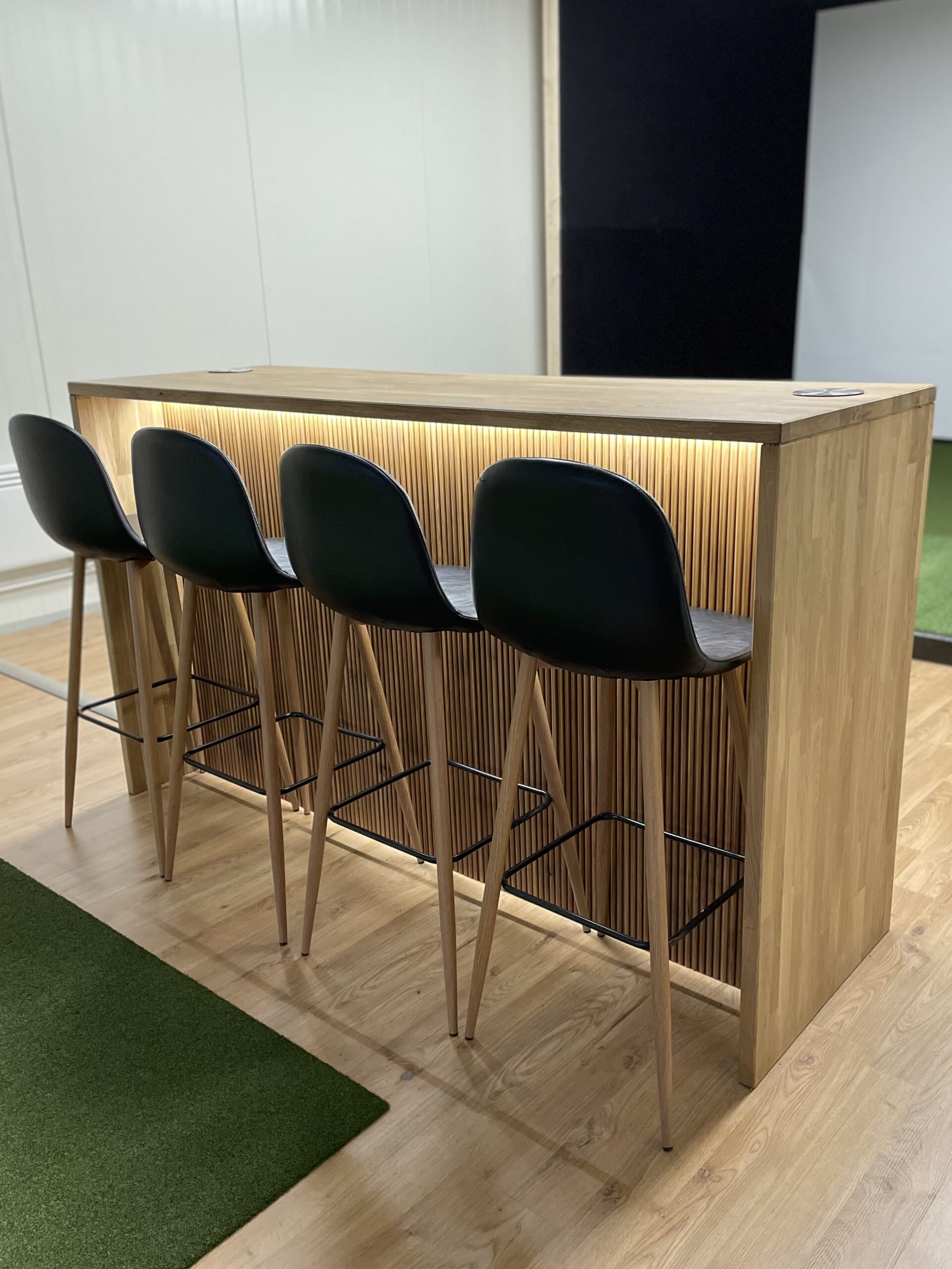 Baaritiski on suosittu valinta golfsimulaattoriin, sillä sen ääreen mahtuu isompikin pelaajaporukka samalla, kun sen sisälle säilöt helposti vaikkapa pallot, tiit ja muut tarpeelliset tarvikkeet. Myös Trackman voidaan upottaa baaritiskiin, jolloin se on paremmin suojassa.