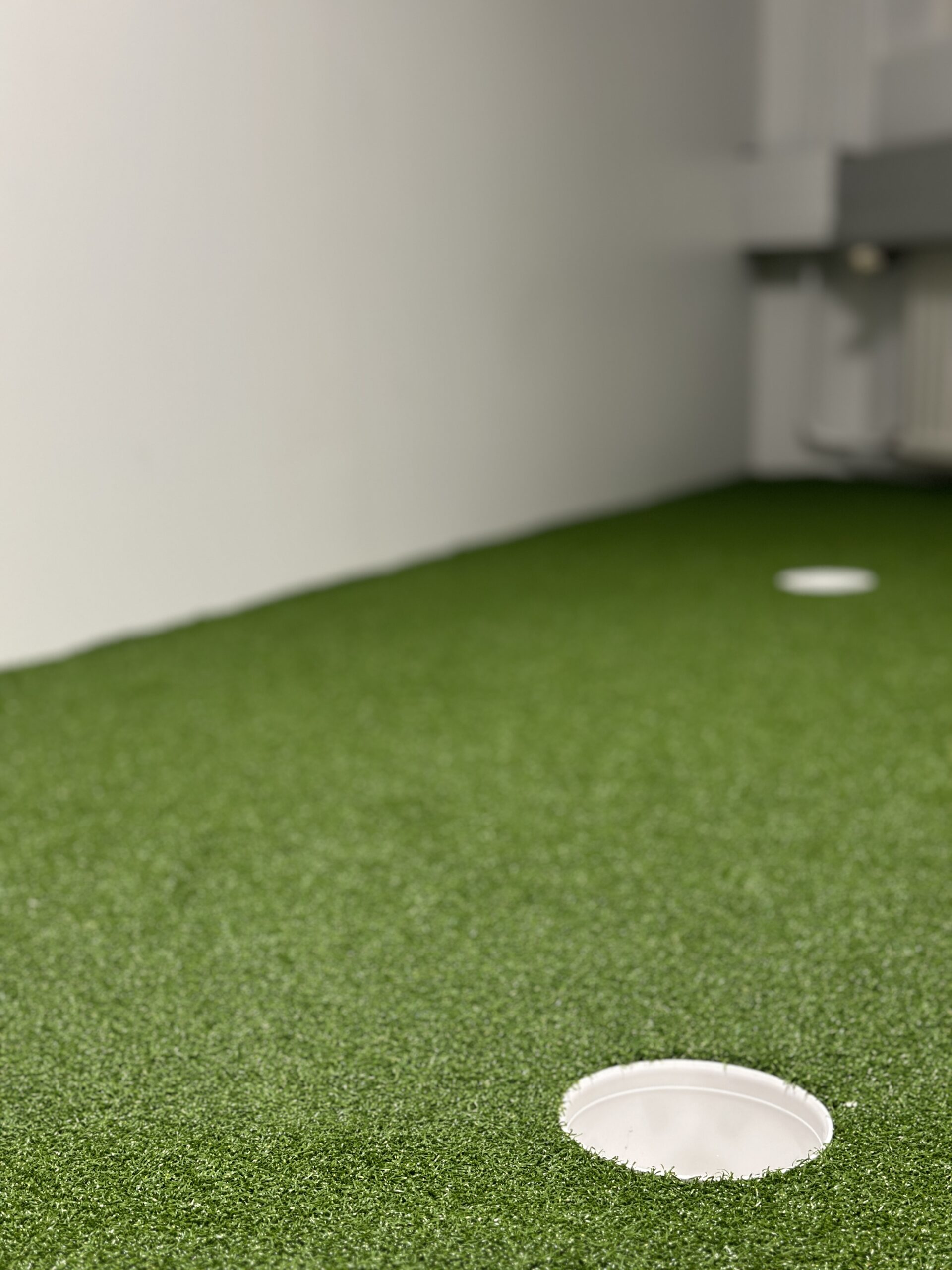 Yksityiskodin autotalliin rakennettiin golfsimulaattorikokonaisuus, jonka ympäröivä tila matotettiin puttimatolla. Alueelle ei asennettu kiinteitä puttikuppeja, jotta alue sopii tarpeen mukaan monenlaiseen käyttöön puttiharjoittelun lisäksi.